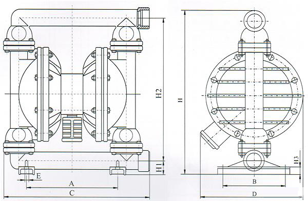 8、結構簡單、易損件少,該泵結構簡單,安裝、維修方便,泵輸送的介質不會接觸到配氣閥,聯桿等運動部件,不象其他類型的泵因轉子、活塞、齒輪、葉片等部件的磨損而使性能逐步下降;