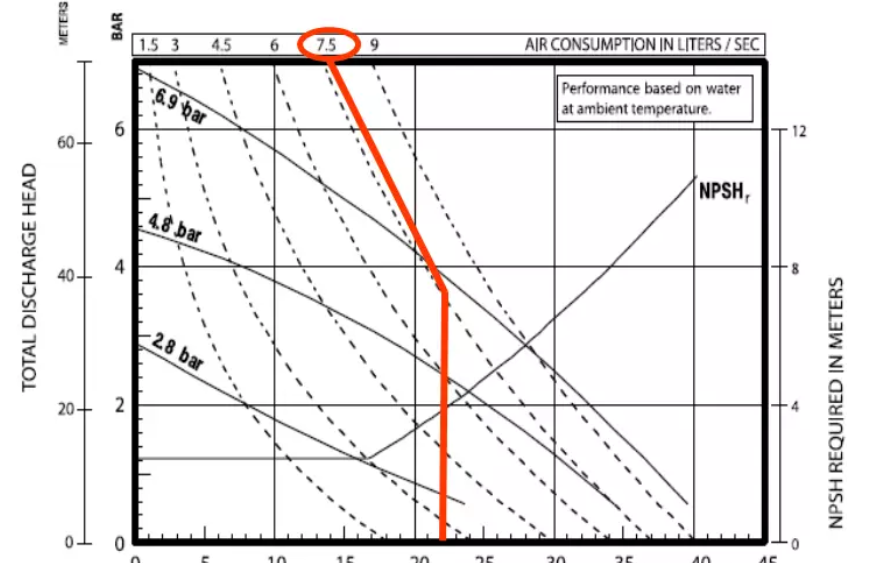 步驟 1:. 從X-軸上22 lpm點垂直向上與氣蝕余量的曲線的交叉點
